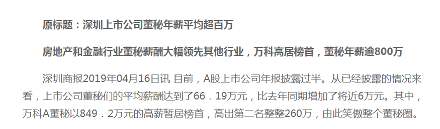 這不,最近深圳上市公司董秘平均年薪就出爐了