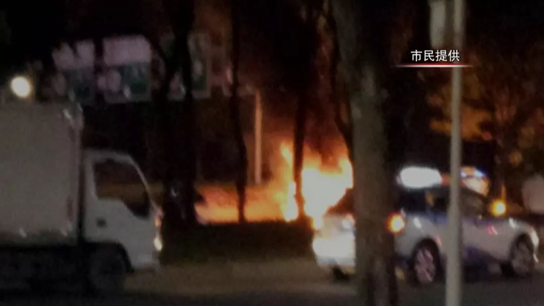 撞上路牌鐵柱子,出租車突然起火!的 ...