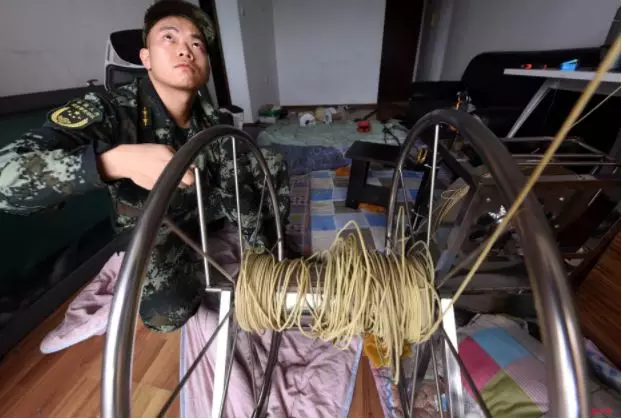 “這是特制的魚線,能釣起上百斤的魚!”下士班長黎偉俊介紹。現(xiàn)場,除了牙簽大的飛線,還發(fā)現(xiàn)了特制灰色絲線三捆;雖然只有頭發(fā)絲大小,官兵用手卻始終扯不斷。