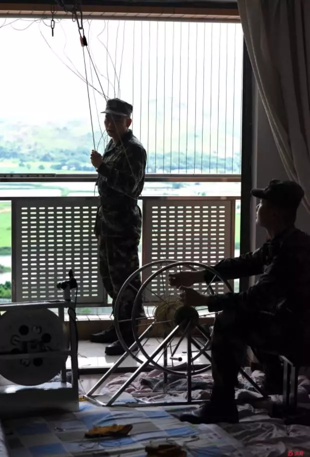 最終,在凌晨3時許,官兵們在28樓的一戶搗毀了這個窩點,但走私分子已人去樓空。官兵們現(xiàn)場查獲走私分子慌忙逃竄時留下的手機、對講機、無人機、自制電動腳手架等做案工具一套,特制的高韌度飛線一批,走私用的黑色行李袋一批。