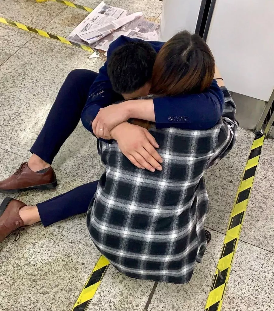 為了趕時(shí)間,郝康著急地跑向乘務(wù)員女友。圖源:央視新聞視頻截圖
