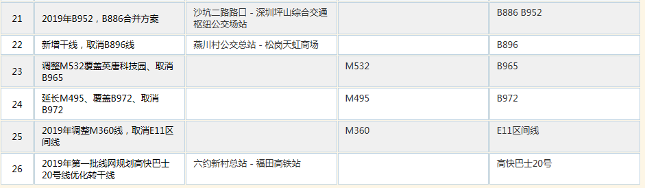 深圳新聞網(wǎng)5月20日訊(記者 涂勝)5月20日下午,深圳市交通運輸局發(fā)布關(guān)于征求《2019年第一批公共汽車線路規(guī)劃方案》(征求意見稿)意見的通告。記者從規(guī)劃方案中的獲悉,本次線路公共汽車線路規(guī)劃方案以完成各區(qū)骨干網(wǎng)搭建及區(qū)域間快線、骨干線網(wǎng)銜接為工作重點,共包含線路方案63個,涉及線路79條(其中,新增5條,調(diào)整24條,合并、取消50條,運力從原特區(qū)內(nèi)向原特區(qū)外轉(zhuǎn)移58臺)。