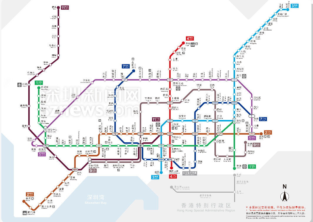 深圳地鐵目前正在運(yùn)營的線路信息↑