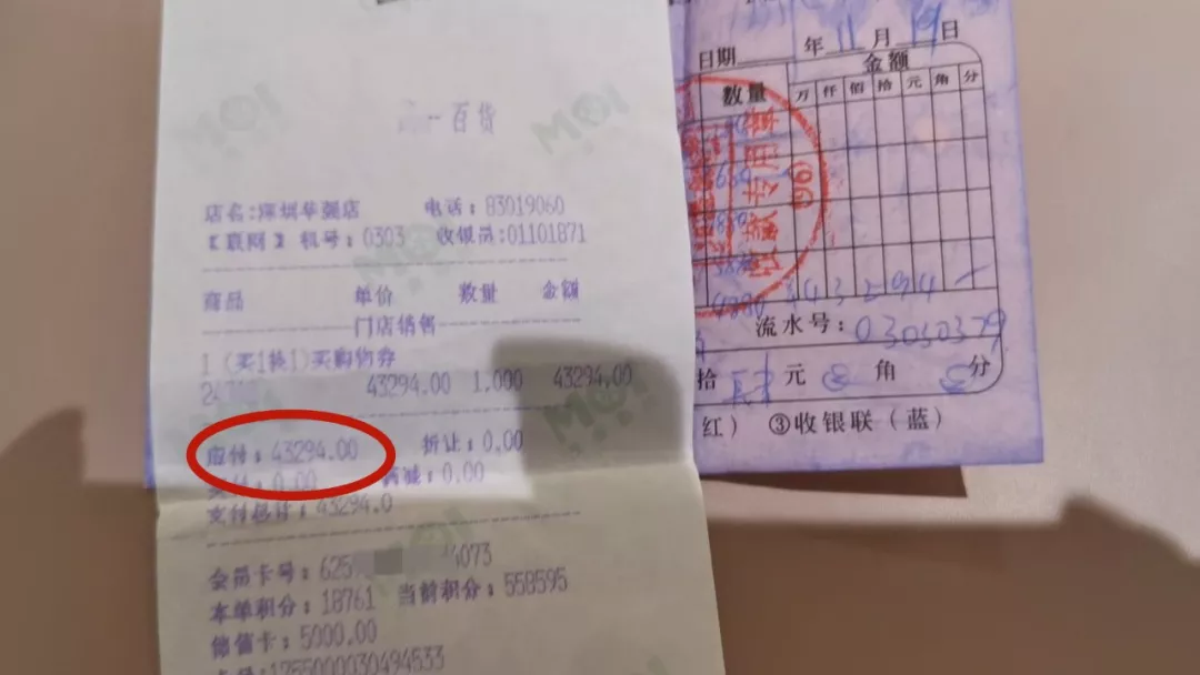 李小姐出示了這批衣服的購物小票,時(shí)間是2017年11月。李小姐說,之所以會幫顧客墊付4萬多元買衣服,一方面是為了服務(wù)好老顧客,另一方面是這單生意做成,會增加李小姐的業(yè)績。