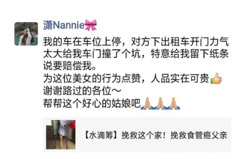 王女士發(fā)現(xiàn)自家車門處被撞了一個(gè)坑,