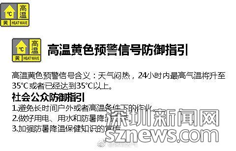 記者從深圳市氣象臺(tái)了解到,6月20日09時(shí)25分全市陸地發(fā)布高溫黃色預(yù)警,預(yù)計(jì)未來(lái)2~3天深圳市天氣炎熱至酷熱,最高氣溫將升至33-35℃,做好防暑降溫工作,避免長(zhǎng)時(shí)間戶外或者高溫條件下的作業(yè)。