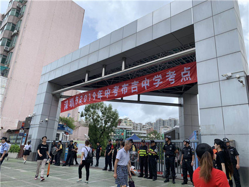 在布吉中學(xué)考點(diǎn),開考前40分鐘,考生已經(jīng)進(jìn)入考場(chǎng)。在布吉中學(xué)考點(diǎn)門口,聚集著一群陪伴孩子考試的家長(zhǎng)。就讀于龍嶺初級(jí)中學(xué)的蔡同學(xué)和朱同學(xué)是同班同學(xué),他們的媽媽便結(jié)伴為孩子"送考"。