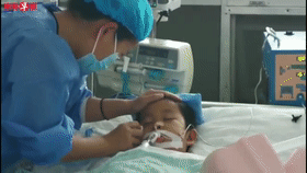 ICU病房里最后一次團(tuán)聚,媽媽不停給和和擦拭臉,不時低下頭親吻和和,抬頭有晶瑩的淚珠滴落。青島早報視頻截圖