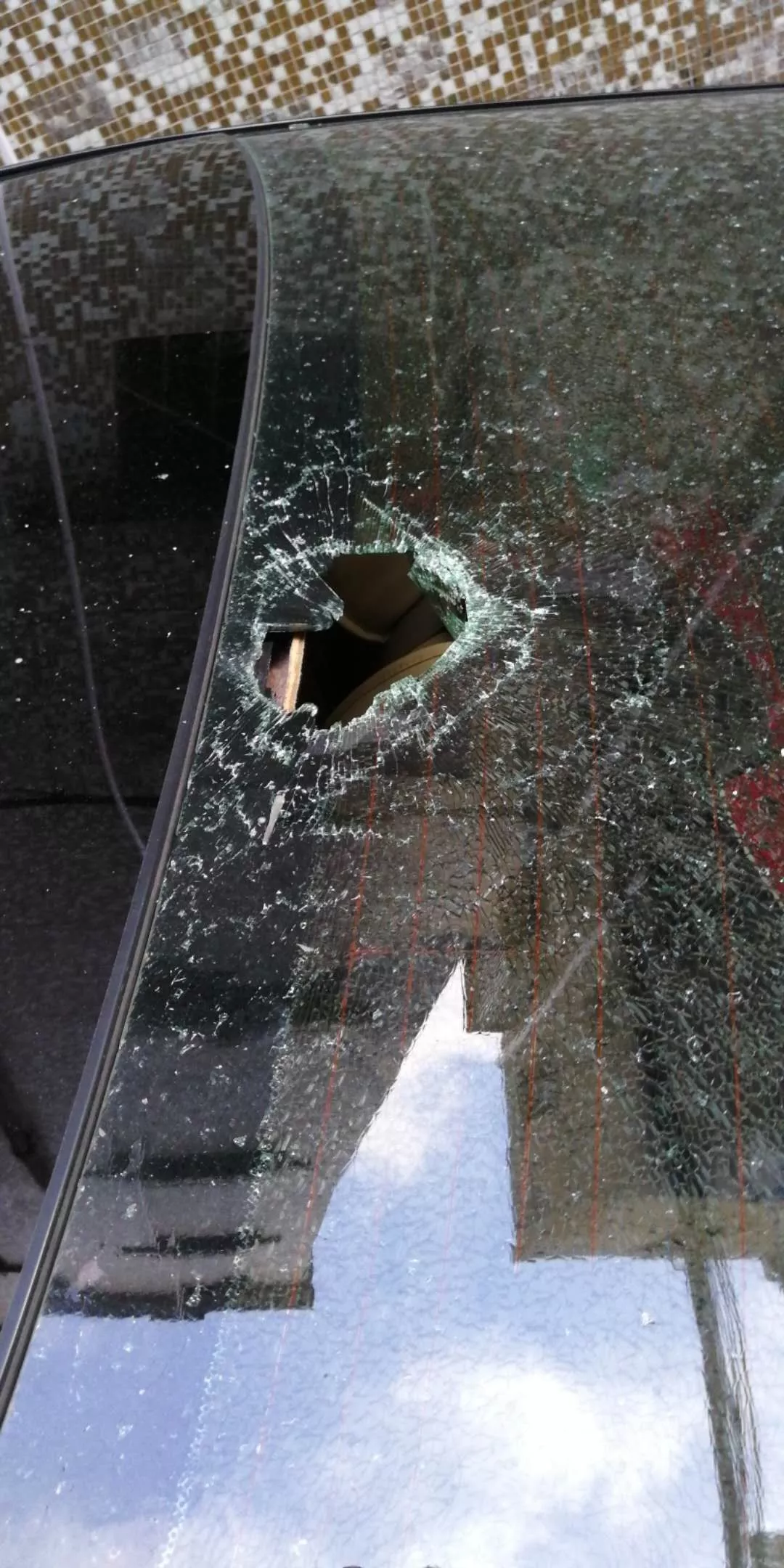▲車玻璃被砸了一個(gè)大洞