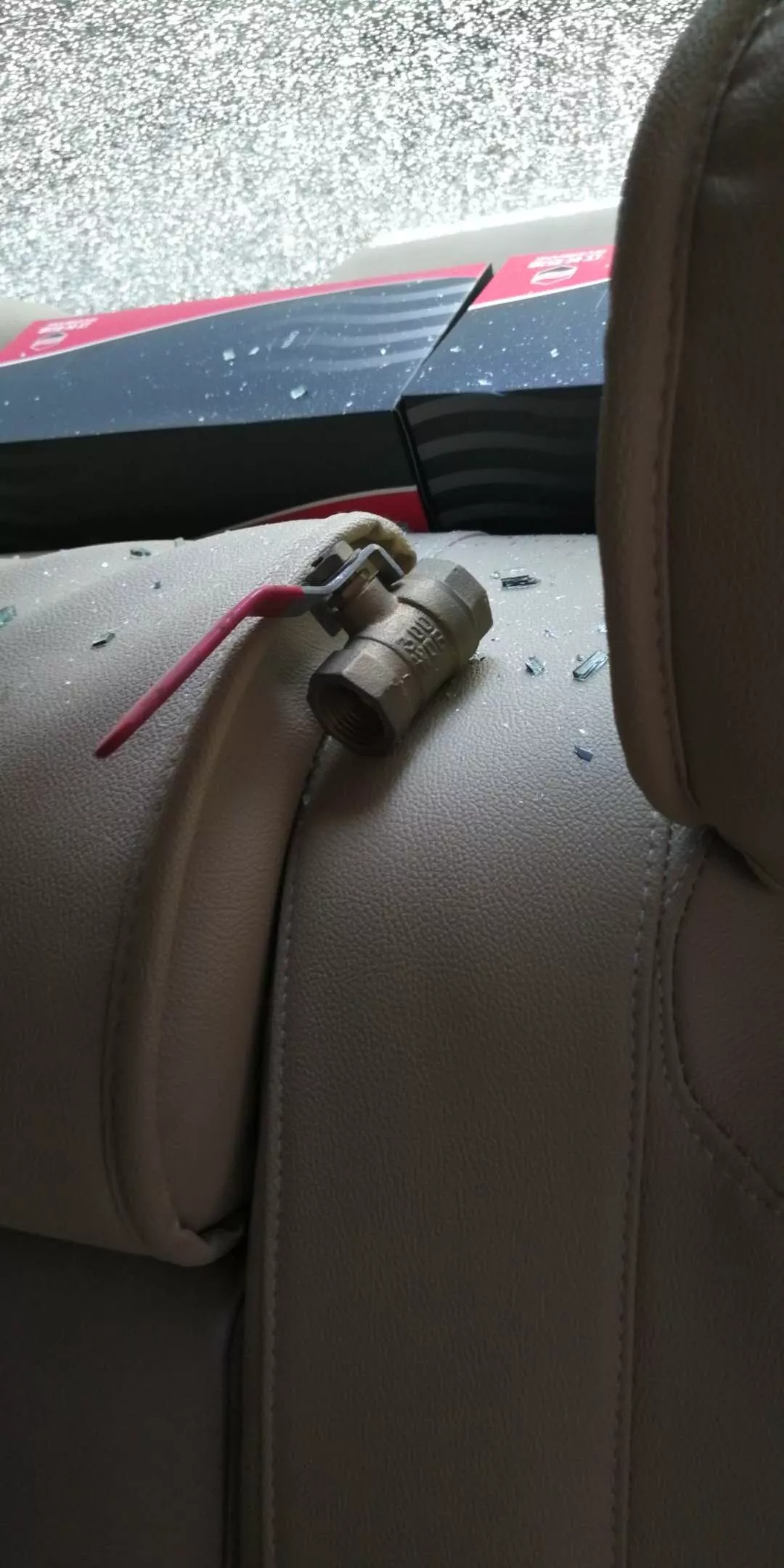 小區(qū)另一位居民林先生的車,也被砸了一個(gè)洞同樣是高空墜物惹的禍!但這次不是芒果而是一個(gè)水閥開(kāi)關(guān)!