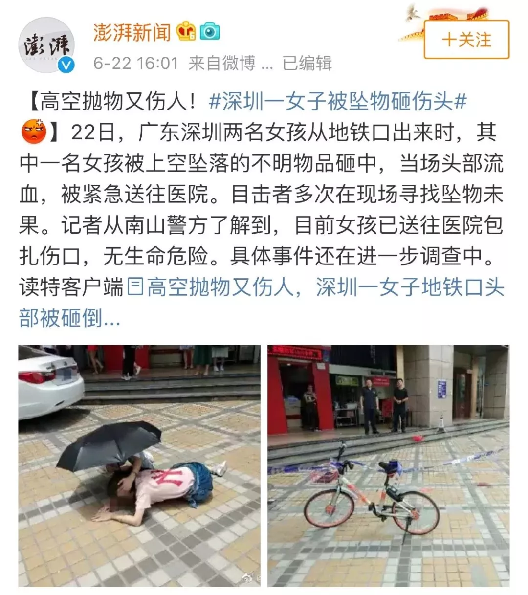 6月19日,一名10歲女童走在路上突然被高空拋物砸傷,至今仍在重癥監(jiān)護室搶救。經(jīng)過警方調(diào)查:罪魁禍首是一名八歲男童。