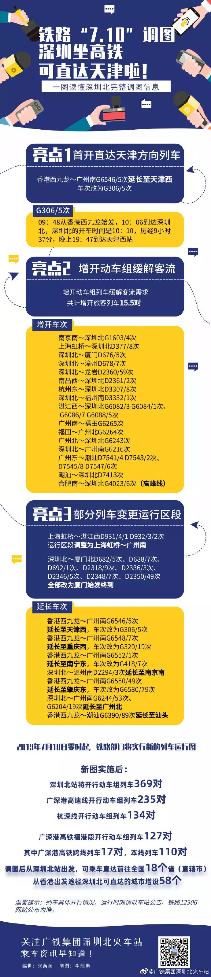 根據(jù)新的運(yùn)行圖安排,深圳北站將開(kāi)行動(dòng)車(chē)組列車(chē)369對(duì),廣深港高速線開(kāi)行動(dòng)車(chē)組列車(chē)235對(duì);杭深線開(kāi)行動(dòng)車(chē)組列車(chē)134對(duì)?!?·10”調(diào)圖后,深圳北站首開(kāi)前往天津方向列車(chē),屆時(shí)從深圳北站出發(fā),可乘車(chē)直達(dá)前往全國(guó)18個(gè)?。ㄖ陛犑校?;從香港出發(fā)途徑深圳北可直達(dá)的城市增設(shè)58個(gè)。