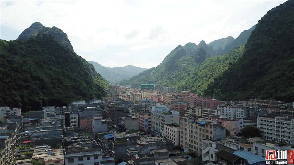 東蘭縣航拍圖,其被大石山“包圍”(航拍圖)