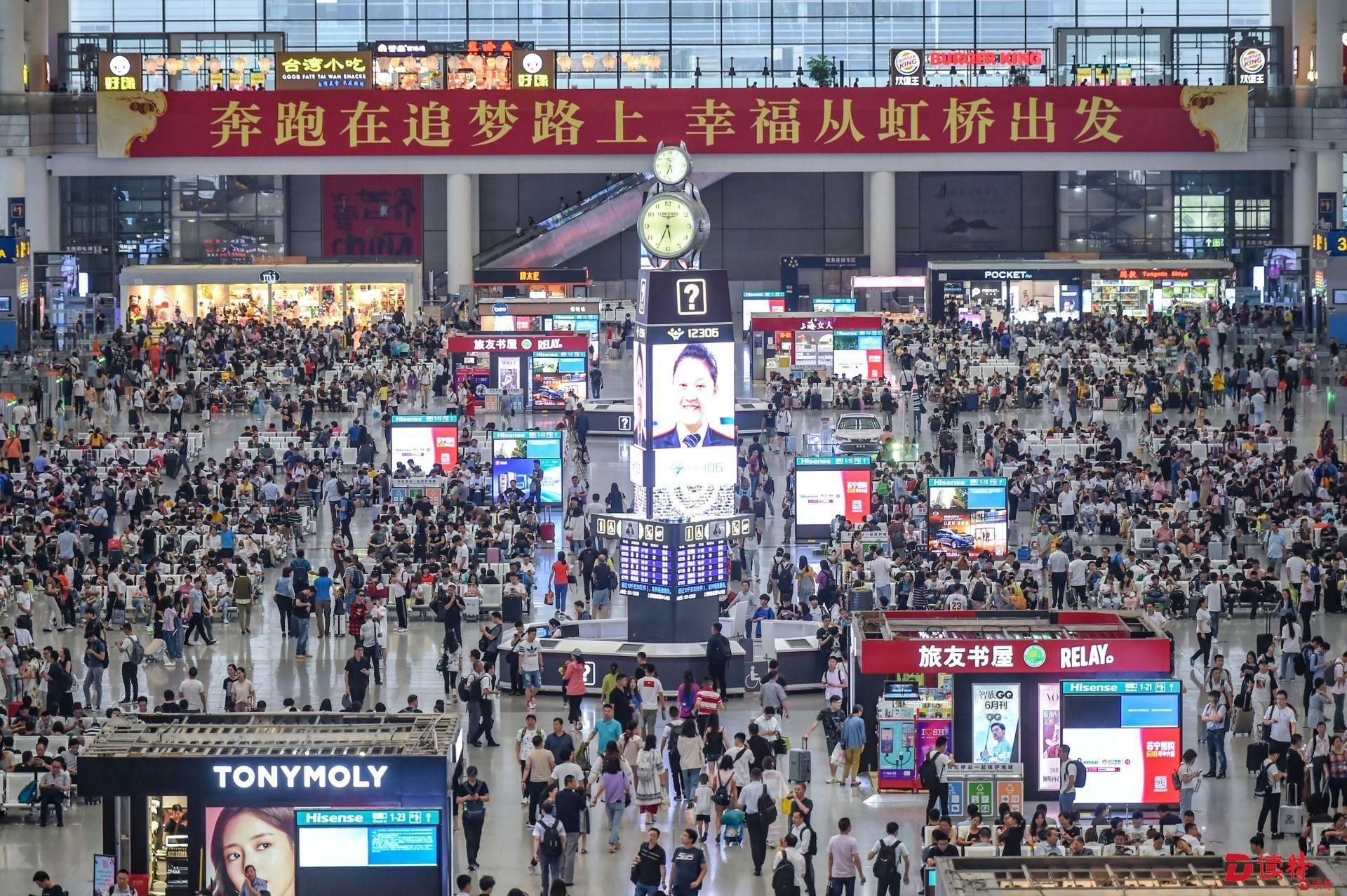 虹橋站是京滬、滬寧、滬杭三線高鐵的交會(huì)點(diǎn),日均到發(fā)旅客40萬人次。