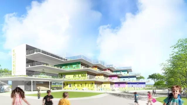深圳市蓮花二村幼兒園重建校舍在緊張的用地中,首先退讓出一個(gè)完整的室外活動(dòng)場(chǎng)地。通過(guò)立體剪裁出層層退臺(tái)的多元化的活動(dòng)空間。南側(cè)向陽(yáng),北側(cè)遮雨,陰晴雨雪皆有孩子們的游樂(lè)天地。