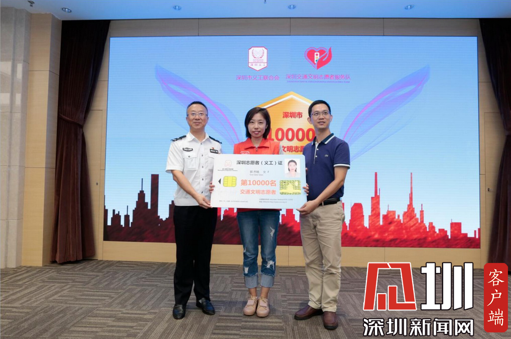 深圳交警為第1萬名交通文明志愿者頒發(fā)義工證