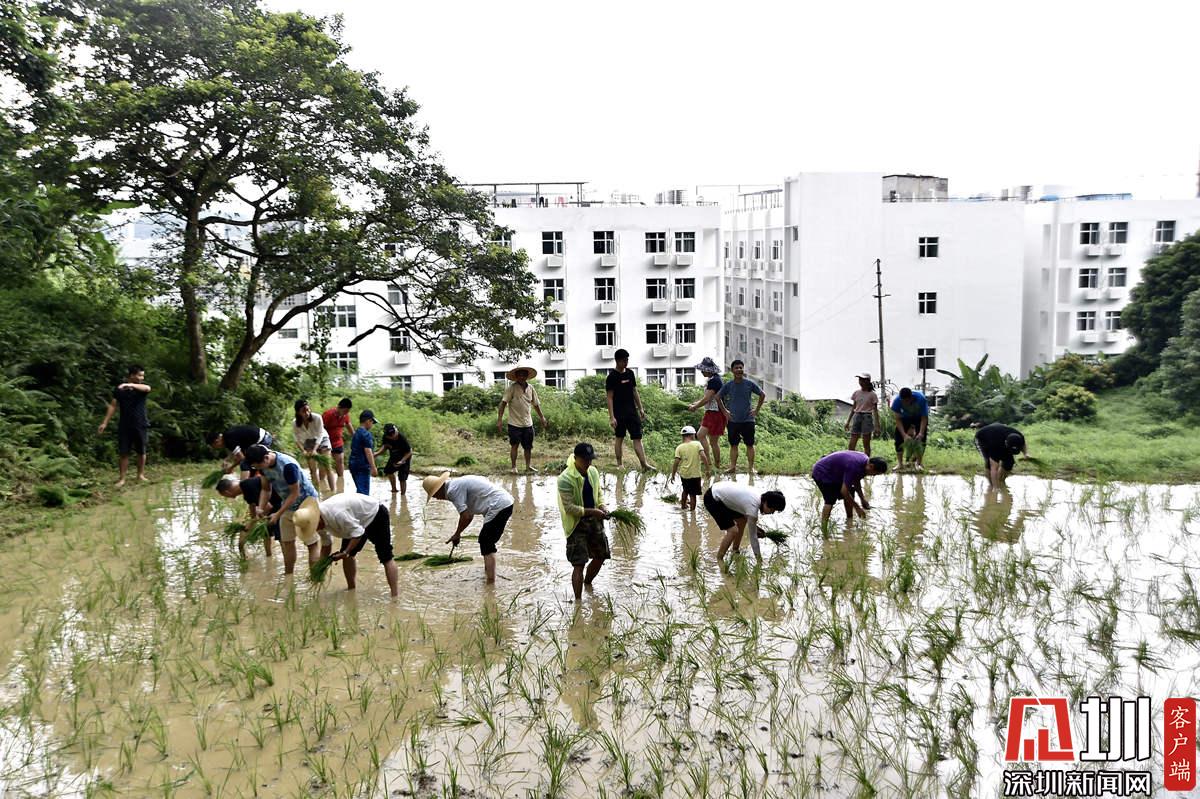 據(jù)了解,本次參加活動(dòng)的青少年有100多名,他們手持秧苗,腳踩泥漿,在社區(qū)老黨員和家長(zhǎng)的指導(dǎo)下體驗(yàn)插秧農(nóng)耕作業(yè)。據(jù)南嶺村社區(qū)黨委書(shū)記張育彪介紹,在深圳高速城市化進(jìn)程中,南嶺村特意保留了20畝水稻田,作為青少年的勞動(dòng)教育基地?!澳康氖亲尯⒆觽儾灰泟趧?dòng)人民的本色,”他說(shuō),“通過(guò)感受勞動(dòng)的艱辛,教育他們要熱愛(ài)勞動(dòng),富而思進(jìn)?!?/p>