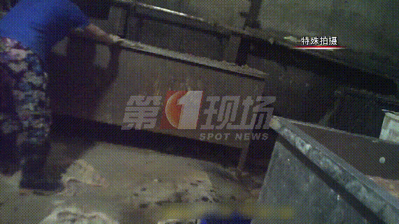 ▲工作人員用腳踩洗牛肚