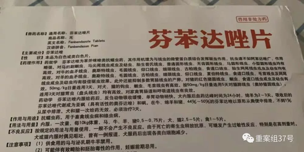 ▲國產(chǎn)芬苯達唑片說明書