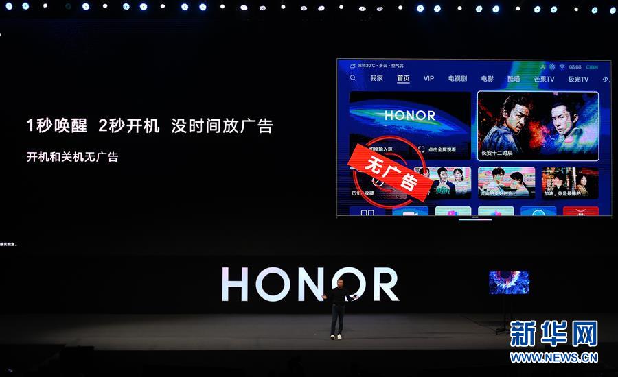 8月10日,華為榮耀總裁趙明在發(fā)布會(huì)上介紹榮耀智慧屏。新華社記者梁旭攝