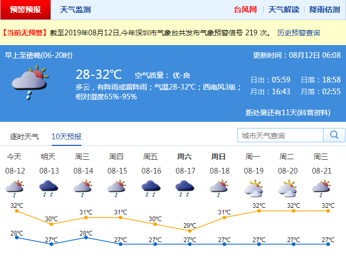 見圳客戶端·深圳新聞網(wǎng)2019年8月12日訊 最近深圳高溫天氣持續(xù),有市民調(diào)侃"仿佛站在空調(diào)外機(jī)旁"。不過,本周起,深圳雷雨天氣增多,局部可達(dá)暴雨,炎熱天氣將有所緩解。