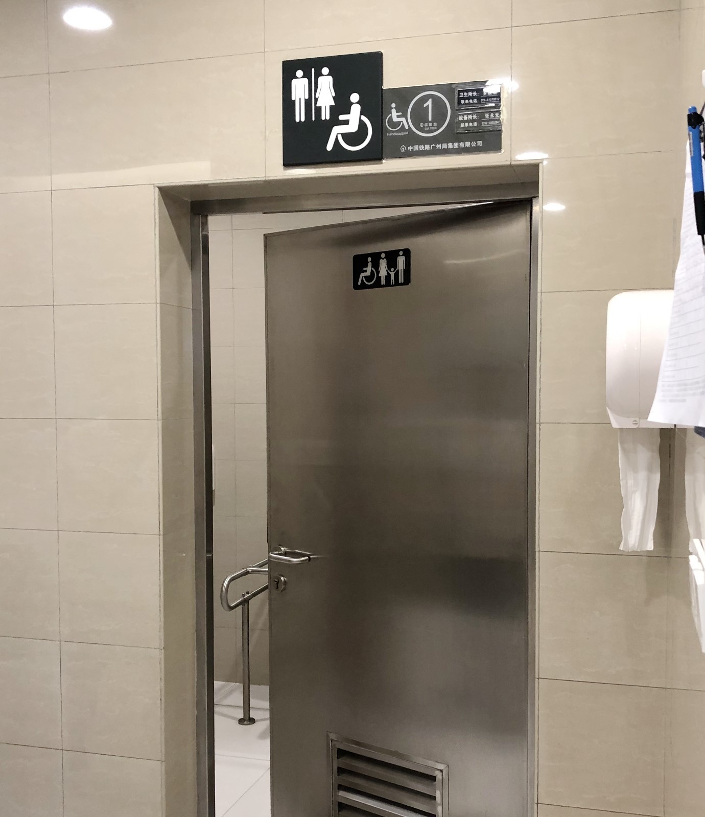 ▲同時(shí)記者留意到,在高鐵站沿路的洗手間指引標(biāo)識(shí)牌上,僅標(biāo)注了男女洗手間和殘疾人洗手間的標(biāo)識(shí),卻沒有第三方洗手間的指引標(biāo)識(shí),只有在殘疾人洗手間的門上才能看到“一家三口手拉手”的圖案標(biāo)識(shí),不方便有需要的市民“按圖索驥”。且該洗手間位置處于男洗手間入口通道內(nèi),如果女性帶孩子進(jìn)入使用,不免有些尷尬。