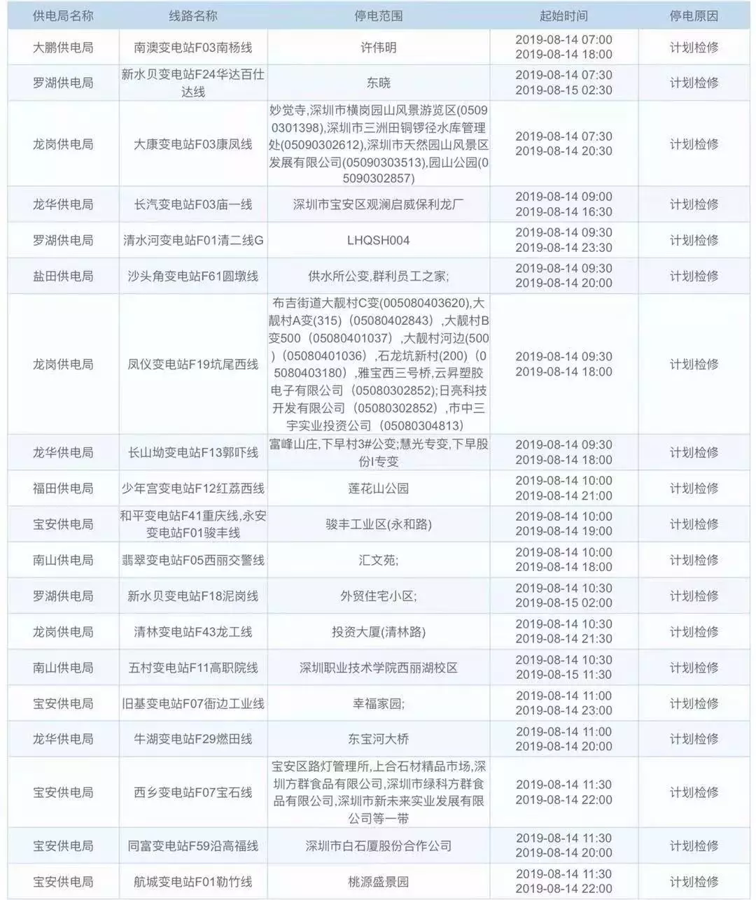 據(jù)中國南方電網(wǎng)信息,接下來這幾天深圳這些地方計(jì)劃停電,快看看有沒有你們家。