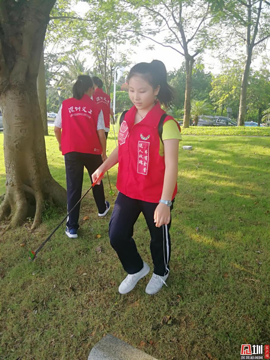又走了兩圈,待我們的垃圾袋已經(jīng)“物”滿為患時,我們放下工具,結(jié)束本次活動。看著被我們回收的一袋袋垃圾,再看看經(jīng)我們“美容”過后的地方,我們擦擦汗,會心地笑了。再看看那充滿笑臉的家長和義工叔叔阿姨時,不由得一陣感慨:這里的義工,真是深圳最美麗的一群人。他們沒有報酬,卻堅持初心,一味地付出,不計回報。他們的精神就如義工服上“贈人玫瑰,手有余香”的幾個字一樣。雖不是流芳千古,卻藏在深圳的一花一草一樹一木里。他們的步子,無數(shù)次踏在那被烈日曬得滾燙的石子路上;他們的手,也一次次撿起垃圾。他們有著自己的工作事業(yè),卻在百忙之中抽出空隙,為美麗的深圳貢獻出自己的一份力量,他們用自己的愛與善良,譜寫了一篇又一篇的“美麗詩篇”,他們用自己的行動,感染了身邊的人群,所以深圳的義工隊伍也越來越大。
