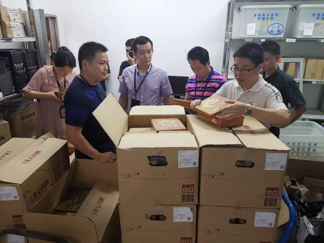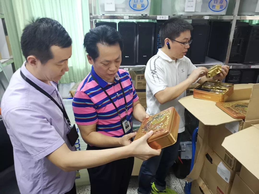 執(zhí)法人員聯(lián)合公安機(jī)關(guān)、商標(biāo)權(quán)利人對(duì)涉嫌假冒月餅進(jìn)行鑒定