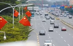 深圳的主干道上已經(jīng)插上了國旗,