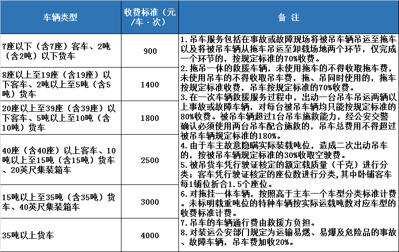 廣東省高速公路吊車服務收費標準見下表: