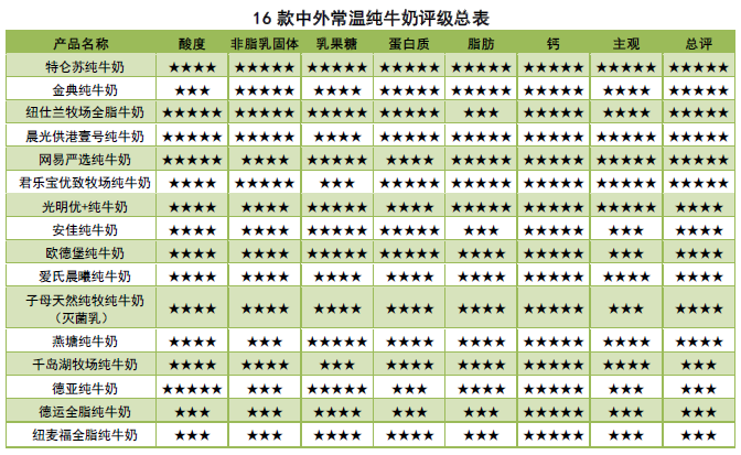 最終,經(jīng)綜合評價,此次中外常溫純牛奶比較試驗中,共6款常溫純牛奶獲五星評價,五款國產(chǎn):蒙牛特侖蘇、伊利金典、君樂寶優(yōu)質(zhì)牧場、晨光供港壹號和網(wǎng)易嚴選純牛奶;一款進口:紐仕蘭牧場全脂牛奶。
