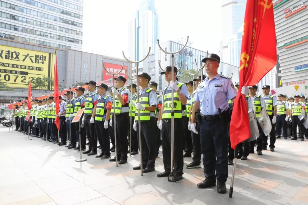 “我自愿加入深圳義警,在黨委政府領(lǐng)導(dǎo)下,公安機(jī)關(guān)指導(dǎo)下,積極開展內(nèi)保外巡,加強(qiáng)鄰里守望,認(rèn)真做好‘一禁四防’,承擔(dān)社會(huì)責(zé)任,維護(hù)轄區(qū)秩序,為共建共治共享平安社區(qū)貢獻(xiàn)力量?!?月12日上午,鏗鏘有力的宣誓聲在深圳市福田區(qū)華強(qiáng)酒店廣場(chǎng)響起。500名義警代表身穿印有“華強(qiáng)北義警”字樣的反光背心,整齊列隊(duì),鄭重地表明為百姓守護(hù)平安的決心和信心。
