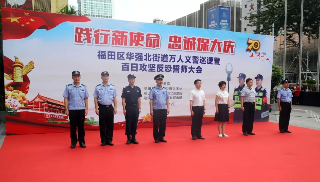 據(jù)了解,為全面推進(jìn)群防群治建設(shè),夯實(shí)基層基礎(chǔ)工作,拓寬群防群治領(lǐng)域,提升群防群治效能,筑牢社會(huì)治安防控體系,12日上午9時(shí)30分,深圳市福田區(qū)華強(qiáng)北街道萬人義警巡邏?mèng)甙偃展?jiān)反恐誓師大會(huì)在華強(qiáng)酒店廣場(chǎng)舉行,華強(qiáng)北街道辦黨工委書記陳曉中,福田公安分局副局長譚慶彬,華強(qiáng)北街道副書記楊華蘭,福田公安分局治安科科長左樂,華強(qiáng)北派出所副所長張瓊漫、黃強(qiáng),通心嶺派出所副所長劉景波等相關(guān)部門負(fù)責(zé)人參加儀式并發(fā)表講話。本次大會(huì)的舉行,意味著福田義警隊(duì)伍再添中堅(jiān)力量。