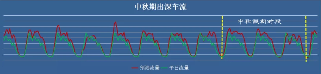 根據(jù)近三年中秋假期前夕的交通流量,結(jié)合今年深圳市道路車輛通行情況,深圳交警預(yù)計,“中秋”假期期間(假期前一日12時至假期最后一日12時),出入深車輛數(shù)均將超過150萬輛次。