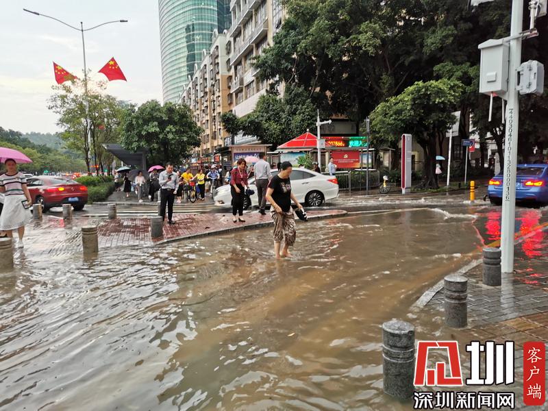 暴雨過后,在福田區(qū)蓮花路上開車如行舟。