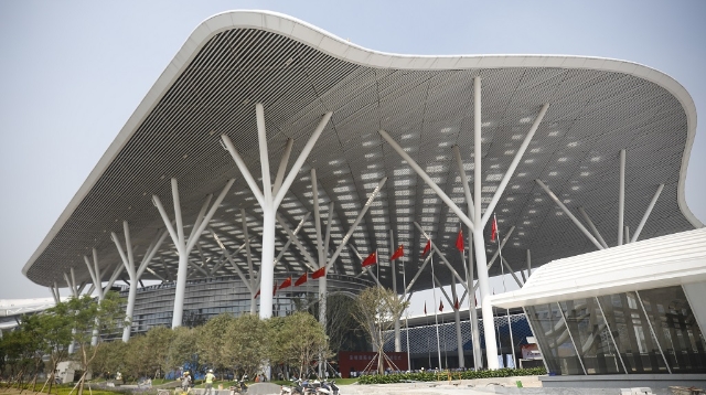 深圳國際會展中心是深圳建市以來最大的單體建筑。圖為展館外景。