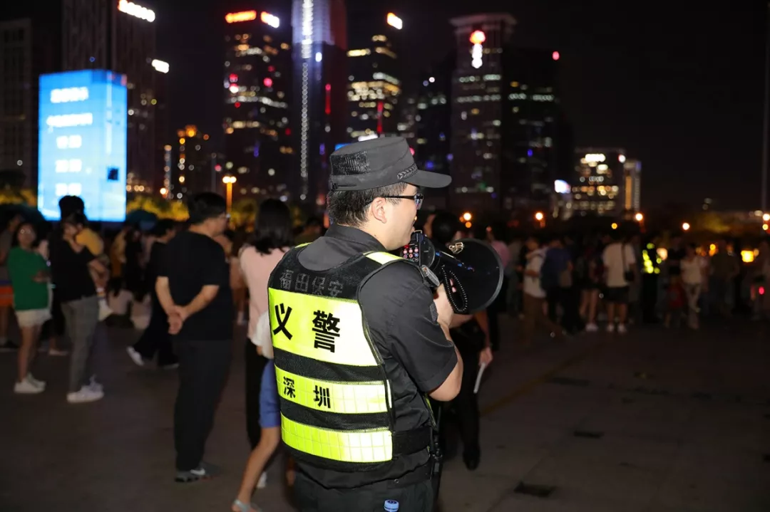 此外,福田公安分局根據(jù)市民中心和蓮花山頂廣場的每日人流負荷情況實時調(diào)整,及時協(xié)調(diào)城管調(diào)控?zé)艄庑悴コ鰰r間并加演,避免人流停滯,緩解疏導(dǎo)壓力。值得一提的是,為了方便市民夜間行走,觀賞區(qū)特地“開辟”了幾條新的應(yīng)急道路,并在所有“黑暗死角”都加裝了應(yīng)急燈。福田公安分局指揮處處長張保軍表示:“在安保警力多次實地巡查后,及時發(fā)現(xiàn)問題并整改、疏通光線不足及堵塞人群的道路,使市民們在觀看完燈光秀后能夠更加安全、快捷地離開。”除此以外,在人流密集的燈光秀現(xiàn)場,孩童走失、物品遺失的情況也有發(fā)生,安保人員不斷地通過廣播尋人、尋物,進行實名登記,盡心盡力地為市民、游客解決切身難題。