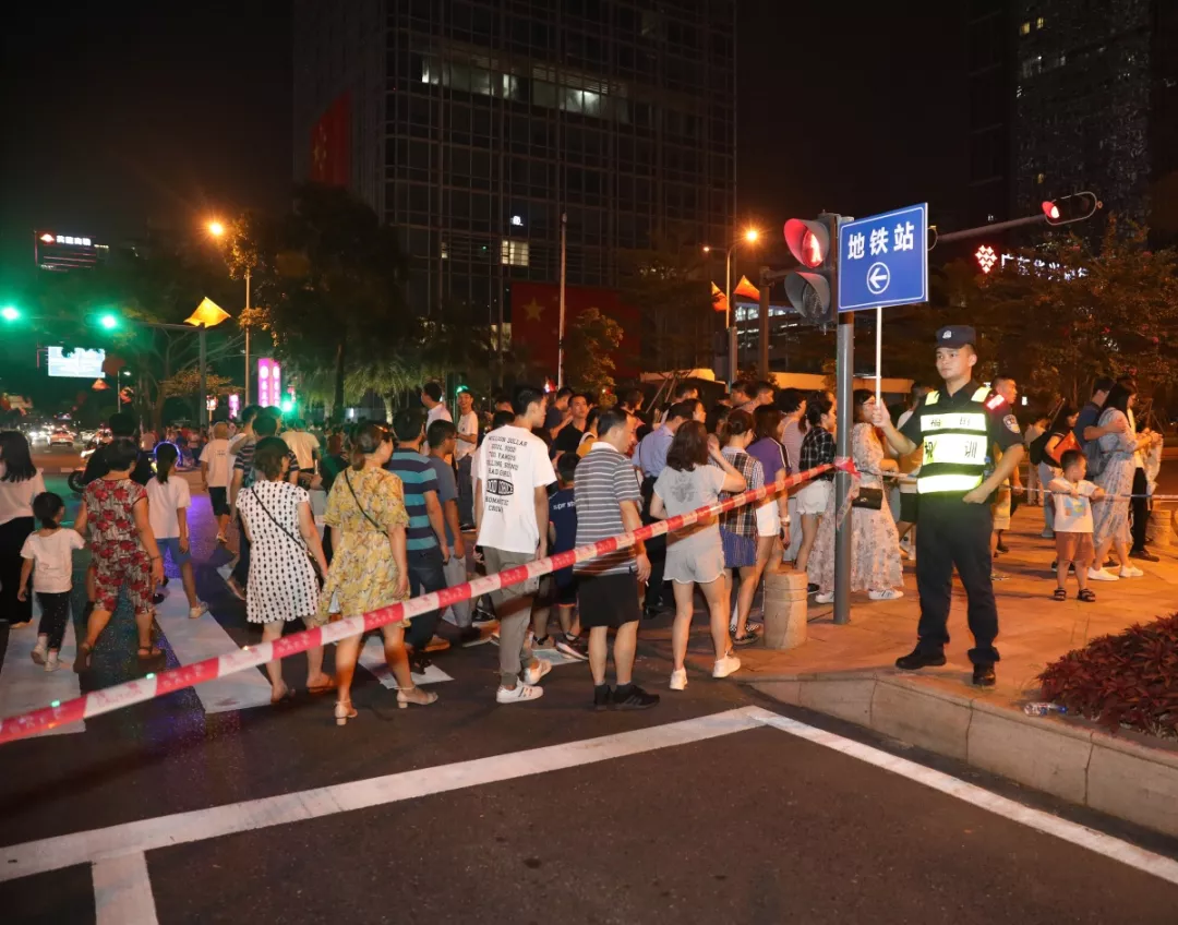 “同一個時間、同一個地點,如何保證十幾萬人看完燈光秀,安全、有序、祥和地離開,這不是一個簡單的安保工作,是一個系統(tǒng)工程?!备L飬^(qū)副區(qū)長、公安分局局長江峰表示。本次燈光秀疏導(dǎo)工作在國慶節(jié)前已做了預(yù)案,警力每天下午五點半就全部上崗,保證所有的閘口人員就位,封控福中三路和深南大道輔道,利用隔離帶當(dāng)鐵馬,人流北進南出?!拔覀兺ㄟ^在廣場各出入口及周邊路段,加裝地鐵、公交指示牌,全程指引疏導(dǎo)人群走向。對市民中心地鐵站六個出入口進行單循環(huán)規(guī)劃,所有觀眾進場都是單行線,這樣人群不會形成對沖,保證疏導(dǎo)有序進行。”福田公安分局副局長譚慶彬介紹道。