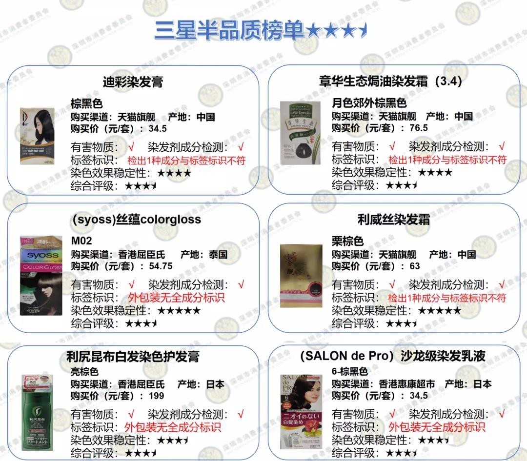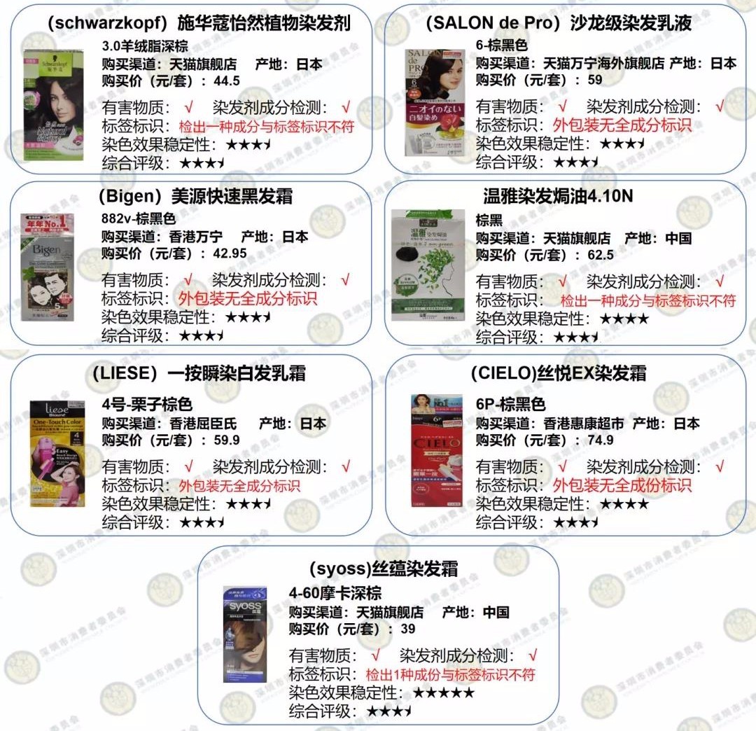 深圳消委會(huì)評(píng)測(cè)20款染發(fā)劑:多款產(chǎn)品個(gè)別成分與標(biāo)簽不符