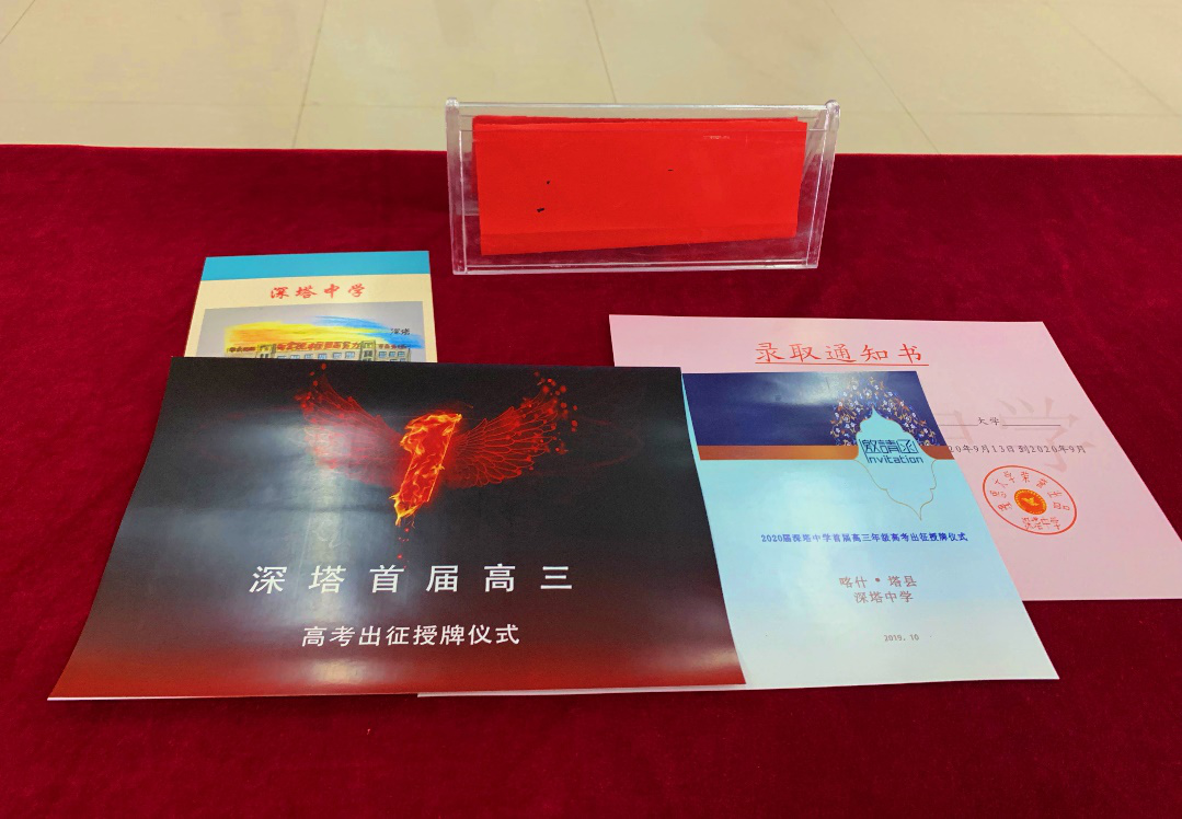 深圳特區(qū)報2019年10月10日訊 三載寒窗,千日苦練,千帆競渡,且看今朝。為了激發(fā)高三學子的拼搏精神,增強迎戰(zhàn)高考的信心,10月9日下午,深塔中學隆重舉辦了首屆高三高考出征授牌儀式。來自深圳援疆前指、喀什地區(qū)人民政府督導室、喀什第二中學、特區(qū)高級中學、喀什實驗中學、喀什第三中學、喀什第四中學、喀什第六中學的代表,深塔中學行政領導班子、高三全體教職工、部分家長代表參加了儀式。