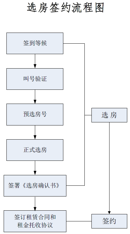 選房地點在深圳市福田區(qū)紅荔西路蓮花大廈東附樓三樓選房區(qū)。選房方式為合格家庭按照選房排位順序依次選擇對應(yīng)配租面積標(biāo)準(zhǔn)的住房,對應(yīng)房源選完即止。選房簽約流程如下: