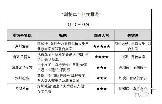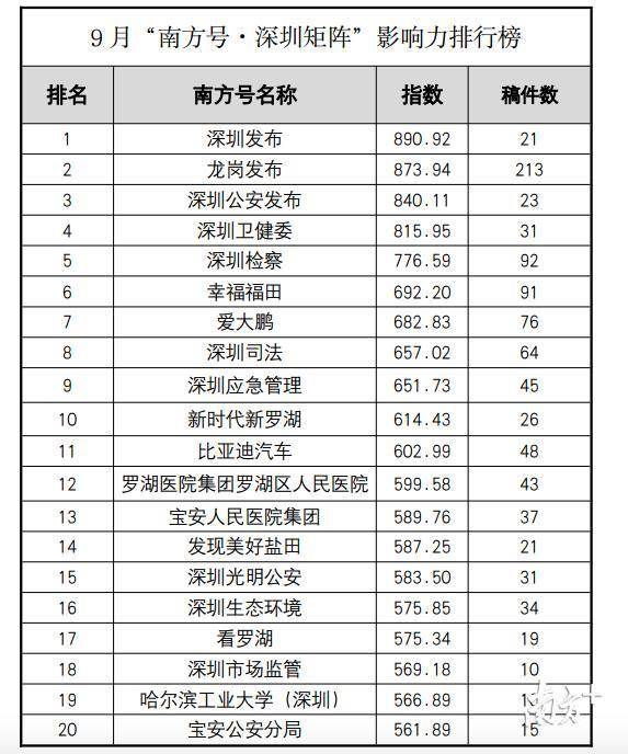 原標(biāo)題:5個(gè)南方號(hào)首上榜,“深圳發(fā)布”蟬聯(lián)第一!“南方號(hào)·深圳矩陣”9月榜單出爐
