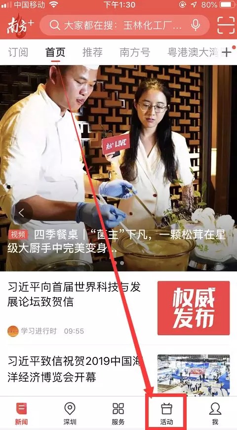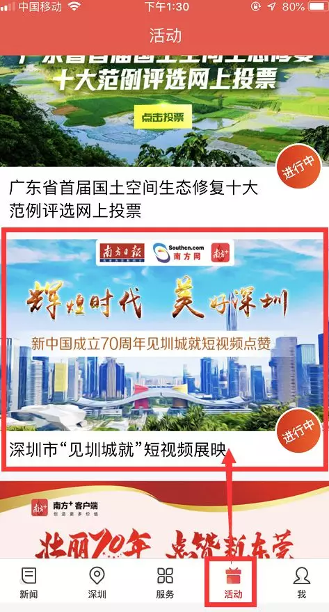 2、打開南方+客戶端首頁,在首頁底部菜單欄點擊“活動”