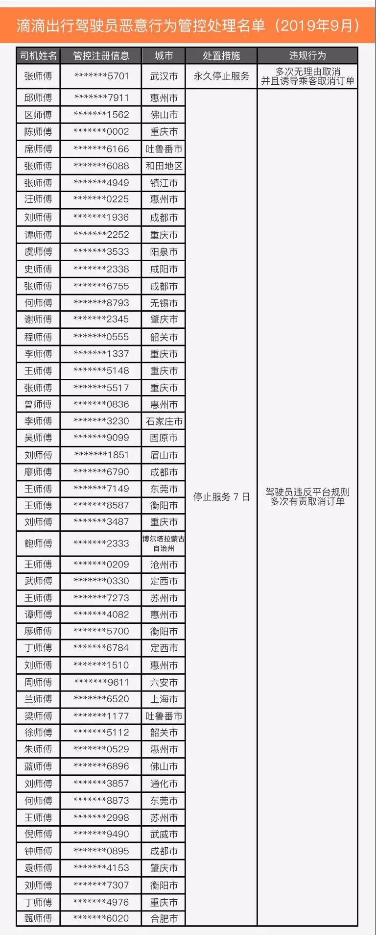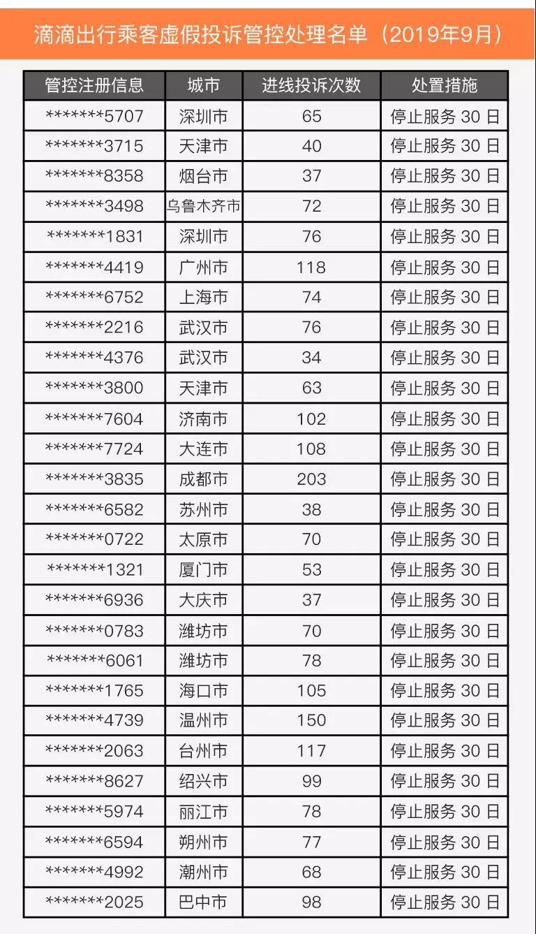晶報2019年10月25日訊 昨日(24日),滴滴出行微信公眾號公示2019年9月部分虛假投訴的乘客以及存在惡意行為的駕駛員名單,名單中包括27名乘客和50名司機(jī)。