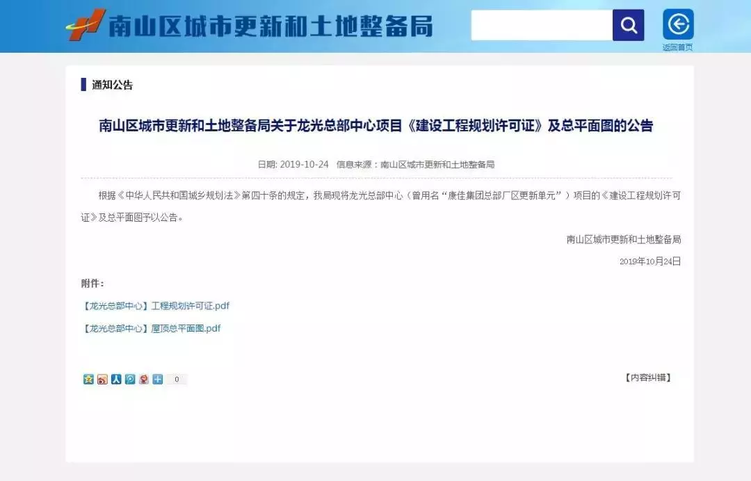 該項目近日已取得政府頒發(fā)的《深圳市建設(shè)工程規(guī)劃許可證》。10月24日,南山區(qū)城市更新和土地整備局發(fā)布的公告披露了這一信息。