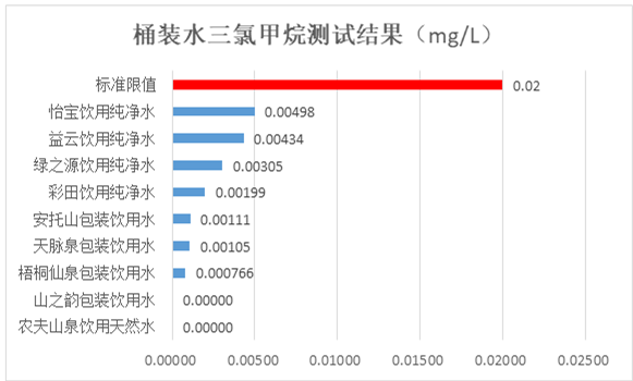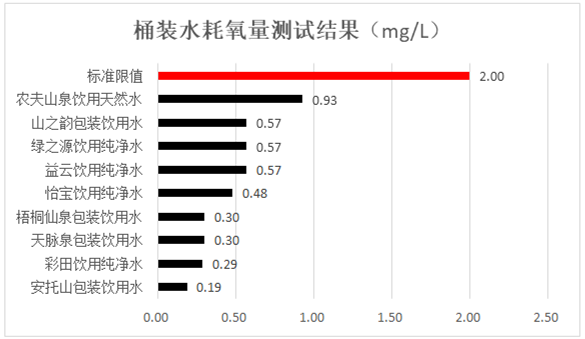 12款桶裝水污染物安全測試均符合標準要求。其中,耗氧量方面,所有飲用純凈桶裝水和其它飲用桶裝水耗氧量均符合標準要求,安托山、彩田、天脈泉和梧桐仙泉包裝飲用水受有機污染更少;所有飲用純凈桶裝水和其它飲用桶裝水三氯甲烷符合標準要求,農夫山泉飲用天然水和山之韻包裝飲用水未檢出,表現(xiàn)更好。