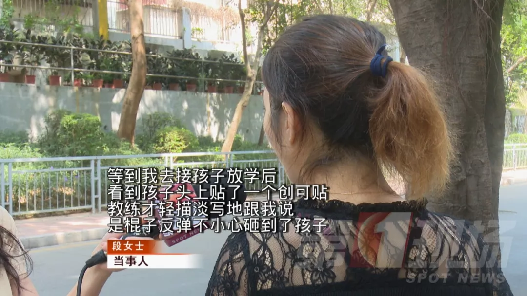 監(jiān)控畫面中被教練用棍棒砸中的孩子,正是段女士7歲的兒子小劉。段女士說,孩子在課堂上受傷后,教練和培訓機構并沒有第一時間通知她,甚至在她來接孩子時,也沒有主動告知實情。