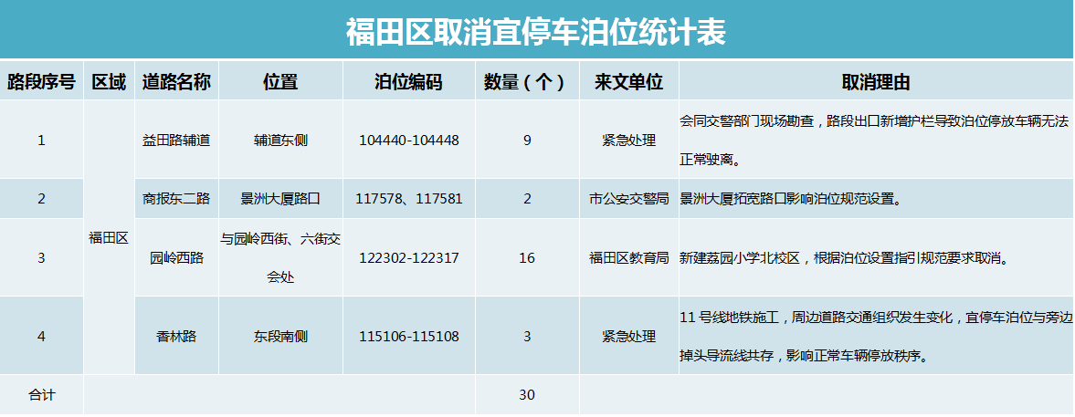 見圳客戶端?深圳新聞網(wǎng)2019年10月28日訊訊 10月28日,深圳市交通運輸局、深圳市公安局交通警察局發(fā)布通告稱,將取消福田區(qū)等6區(qū)20條道路共計338個宜停車泊位?,F(xiàn)將取消6個區(qū)部分宜停車泊位情況進(jìn)行公示,市民有意見可于2019年11月26日前反饋。