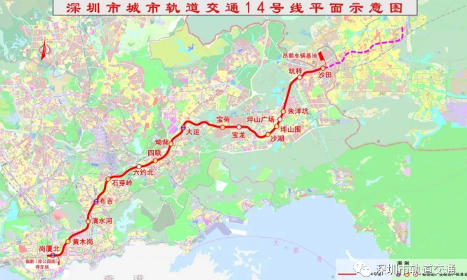 地鐵14號線全長約50.34km,共設站17座、停車場1座、車輛段1座、主變電所4座,采用自動化無人駕駛,最高設計速度為120km/h,預計2022年竣工。它連接起福田中心區(qū)、布吉、橫崗、大運新城、坪山中心、坑梓,支撐整個東部發(fā)展軸,覆蓋東部地區(qū)南北向交通需求走廊。
